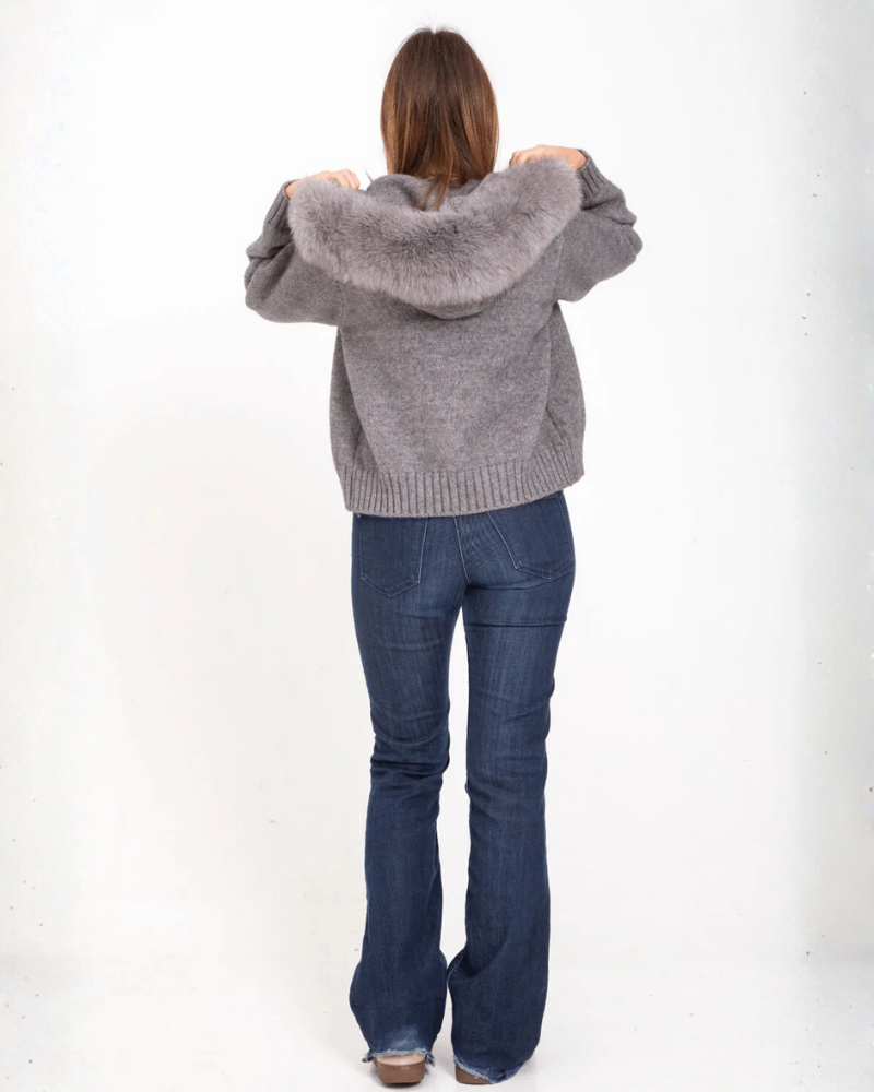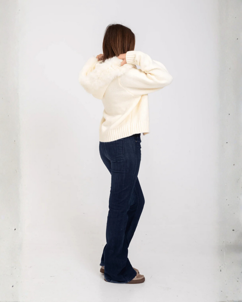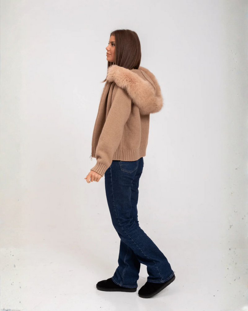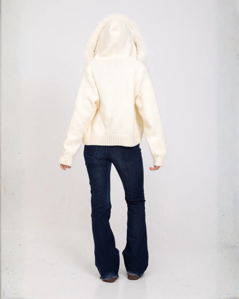 Descubre la combinación perfecta entre estilo y comodidad con nuestro jersey de punto suave en color crema, una prenda imprescindible para elevar tus looks de invierno. Su diseño destaca por la capucha adornada con un sofisticado borde de pelo sintético, que aporta un toque chic y moderno.